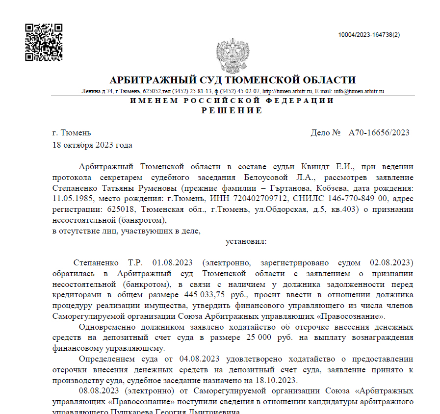 С 2015 года банкротство физических лиц стало официально возможным через Арбитражный суд — именно там и рассматриваются такие дела.
